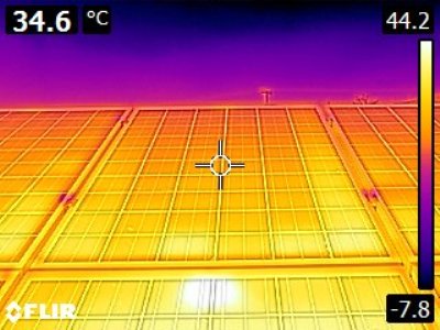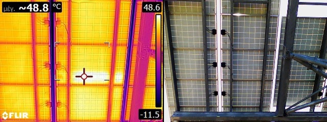 Κατά την επιθεώρηση του Φ/Β Σταθμού εντοπίστηκαν 9 Φ/Β Πλαίσια τα οποία είχαν βραχυκυκλωμένες bypass diodes. Η κατασκευάστρια εταιρεία των Φ/Β Πλαισίων είχε κλείσει. Έτσι μέσω της ασφαλιστικής κάλυψης του Φ/Β Σταθμού διεκδικήσαμε εκ μέρους του πελάτη μας και επιτύχαμε την αντικατάσταση των προβληματικών Φ/Β Πλαισίων.