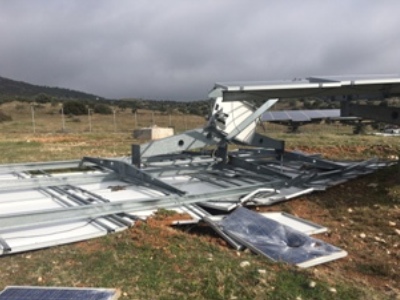 Μετά από έντονα καιρικά φαινόμενα, 2 trackers του Φ/Β Σταθμού καταστάφηκαν ολοσχερώς. Η ανταπόκριση του συντηρητή ήταν άμεση και μας ανατέθηκε η σύνταξη των σχετικών τεχνικών εκθέσεων και η επίβλεψη της αποκατάστασης των βλαβών. Η αποκατάσταση ήταν άμεση και η αποζημίωση ήταν η μεγαλύτερη δυνατή, ελαχιστοποιώντας την απώλεια εισοδήματος.